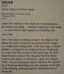 L’après-midi commença par une promenade sur le Brooklyn Bridge le premier plus long pont suspendu du monde construit en 1857 puis sur Broadway Ave avec un arrêt au Financial District où Wall Street était barricadé, Bowling Green Park et le Bronze Bull. Je m’arrêtais longuement au National Museum of the American Indian hébergé dans l’ancien immeuble de la douane. Il expose l’art des Natifs. Une salle était consacrée à Carl Beam, No photo, que j’avais déjà vu à la Galerie d’Art d’Ottawa, Canada. Je présente une étrange composition de son immense projet The Whale of Our Being. |