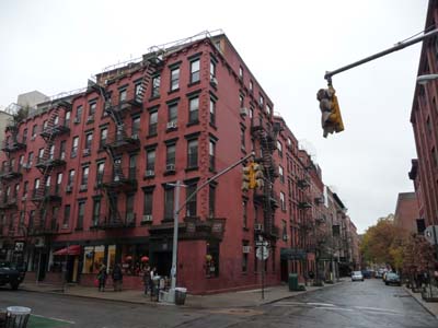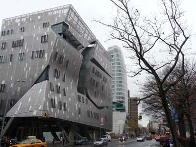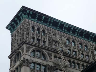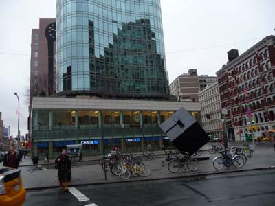 Je débarquais du Path à la station de la 9th Street sous un crachin qui perdura toute la journée. Le mardi, beaucoup de musées sont fermés, en conséquence ce fut une journée de promenade la tête en l’air pour chercher les édifices bizarres dans les rues de Manhattan. Elle commença à Astor Place avec son Cube. Dans une rue adjacente le Cooper Union House présente une étrange architecture de recouvrement de l’édifice, pourquoi faire simple quand on peut faire biscornu. Broadway est une avenue incontournable avec des cheminements la traversant plusieurs fois pour aller de quartier en quartier. |