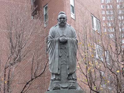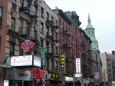 Puis ce fut Chinatown sous la pluie avec ses odeurs de poissons séchés et de végétaux exotiques. Alentour je découvris une église, un temple Bouddhiste et une statue de Confucius. Une partie du village occupe un quartier près de Manhattan Bridge autrefois le quartier juif avec la plus ancienne synagogue de NYC -1887- aujourd’hui un musée visitable sans restriction. |