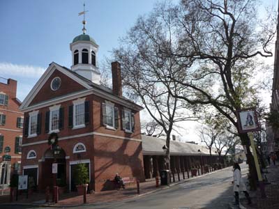 Philadelphie est la plus représentative des villes de la côte est au temps des colonies Britanniques. Elle devint le centre de l’opposition à l’Angleterre et le lieu de la déclaration d’indépendance le 4 juillet 1776. |