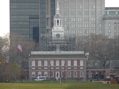 La journée fut encore belle et froide. J’avais laissé le camion à Woodcrest Station (53km retour de Timberlane Campground) en le sécurisant contre les vandales et j’avais pris le Pacto -Port Authority Transfer Corp- pour Philadelphie (22mi retour). Je ne peux pas ne pas faire des commentaires personnels. Le premier est une leçon de marketing de l’Histoire destinée tant aux américains qu’aux visiteurs étrangers. Les politiciens européens, en ce temps de crise, auraient été bien intentionnés s’ils avaient fait dès 1957, Traité des Communautés signé à Rome, un acte de vente de la future Europe ainsi que tout au long de l’évolution des traités. Le deuxième concerne les Pères Fondateurs, pénétrés de religion, ils allaient prier à Christ Church, n’avaient pas conscience de l’évolution imprimée par le temps et les technologies. La Constitution, élevée au rang d’une religion, est actuellement mise à mal par l’opposition du Président et du Congrès lire les articles d’American Prospect de fin septembre, les auteurs, Chris Phillips, Larry Sabato et d’autres. |