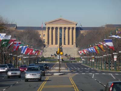 Le lendemain je fis une longue promenade dans Philadelphie d’est en ouest pour atteindre le Philadelphia Museum of Art dominant The Benjamin Franklin Parkway crée d’après les Champs Elysées de Paris. Le musée présente des collections de l’art asiatique, des œuvres de la Renaissance et des peintures d’Europe et d’Amérique. Il faudrait plusieurs jours pour admirer l’ensemble des objets exposés. Le long du Parkway d’autres musées et instituts sont présents dont un musée Rodin fermé pour la saison. La journée fut encore ensoleillée et froide. |