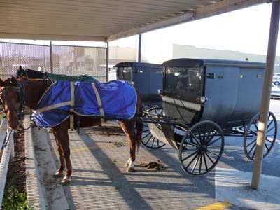 Au petit matin je découvris des chariots sous un appentis, renseignements pris les voitures attelées appartenaient à une communauté Amish des environs. |