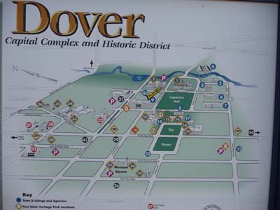 Après les achats au Walmart et le plein de diesel du camion je parcourais le centre historique de Dover. Les bâtiments administratifs en briques rouges sont distribués devant le Legislative Mall et autour de The Green selon l’ordre de William Penn. Je visitais ceux qui étaient ouverts en cette saison et dont l’accès est gratuit, The Old State House et John Bell House avec un figurant récitant sa partition. Deux musées étaient ouverts. |