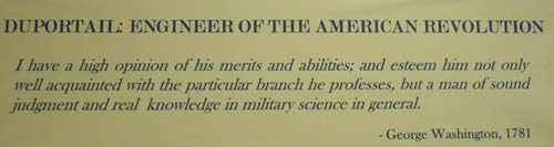 Par delà les images véhiculées dans l’esprit américain Valley Forge fut le tournant de la Guerre d’Indépendance des USA. Dès 1775 une ambassade avait été envoyée en France avec notamment Benjamin Franklin. De l’argent, de l’habillement et des armes furent expédiés en Amérique mais aussi des experts militaires comme Lafayette et Duportail, ingénieur du génie, qui traça les plans du camp de Valley Forge où Washington se retrancha après la défaite de Brandywine Creek en 1777. L’entrée officielle de la France dans le conflit le 6 février 1778 fut accueillie avec enthousiasme. Pendant l’hiver 1777/78 le Baron von Steuben entraîna l’armée continentale de Washington selon les principes de l’armée prussienne. Aguerrie elle s’opposa victorieusement à l’armée britannique. La Guerre d’Indépendance dura jusqu’au Traité de Paris en 1783. |