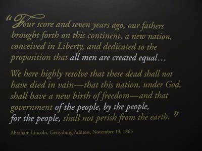 Le Gettysburg National Military Park situé sur le champ de bataille raconte les causes de la Guerre Civile et les trois jours qui firent basculer l’issue de cette guerre en faveur des antiesclavagistes du Nord. Le parcours initiatique commence par un film sur grand écran puis un Cyclorama qui est une peinture sur toile du champ de bataille sur 360° réalisée par Paul Philippoteaux à cette époque. Le musée expose en douze salles des objets, des documents, des dioramas, des vidéos et des textes. Je présente l’essentiel des textes pour la compréhension du conflit qui marqua la deuxième naissance de la Liberté. Mais l’histoire de la libération des esclaves ne fut pas terminée pour autant, il faudra encore un siècle et des assassinats dont ceux de Lincoln, J. K. Kennedy et Martin Luther King. La durée de ma visite, le froid et la pluie ne m’incitèrent pas à faire le circuit touristique du champ de bataille. A la nuit tombante j’échouais au Walmart local. |