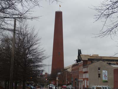 En revenant en ville j’aperçus une tour en brique appelée Shot Tower. Je m’en approchais et découvris qu’elle servait à fabriquer des plombs pour fusil. Elle me rappela la tour de l’usine de Tréfimétaux à Couëron. Je revins à Owings Mills pour passer la nuit sur ce parking avec l’espoir que la police ne m’en chassera pas. |