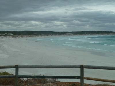 Le Jeudi 4 février je me dirigeais vers Esperance en longeant le Pink Lake puis la Great Ocean Drive avec les plages de Butty Harbour et de Twilight Bay. Hélas le ciel était couvert ne mettant pas en valeur la beauté des sites et la mer turquoise. |