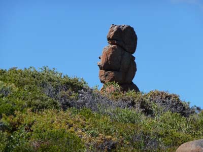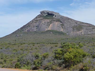 Le lendemain matin je partis en excursion à bicyclette pour faire l’ascension du Frenchman’s Peak -262 mètres d’altitude- Au sommet un tunnel fut creusé il y a 40 millions d’années quand la mer était de 250 mètres au-dessus du niveau actuel. L’ascension ne pose aucune difficulté, la trace est fléchée. Du sommet et de l’intérieur du tunnel la vue de la campagne environnante et de la côte fut exceptionnelle. |
