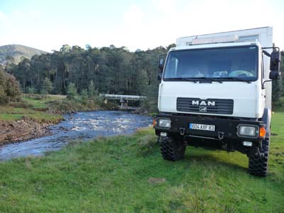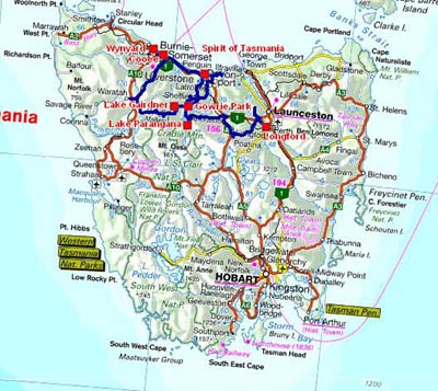 Dès huit heures le mercredi 28 avril je me présentais chez Atlas Copco pour le remplissage des bombonnes des amortisseurs du camion. Je fus accueilli par John STANTON, Directeur Régional de la compagnie, qui me confia à Jock. Le travail fut promptement réalisé, les quatre bombonnes furent remplies à 8 kilos d’azote. De retour à la réception John me dit que le travail avait été fait gratuitement. Je le remerciais chaleureusement. Puis je me rendis à Wynyard pour faire mon marché sous la pluie battante, en conséquence j’allais bivouaquer au LeisureVille Caravan Park dans l’attente très hypothétique de l’amélioration du temps. Le baromètre avait de nouveau sombré. |