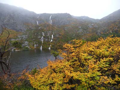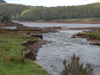 L’objectif de la journée du lendemain consistait à approcher le Cradle Mt National Park dont je souhaitais parcourir les sentiers de randonnée. Le bivouac prévu était au-delà de la jonction pour le parc où j’allais m’informer pour le lendemain. Le bivouac du Lake Gairdner est au bord de l’Iris River, nom de la couleur de l’eau, à sa confluence avec le lac. Le lieu est sublime malgré un vent froid et violent accompagné d’un crachin glacial. Encore une fois j’étais seul, merveilleux. |