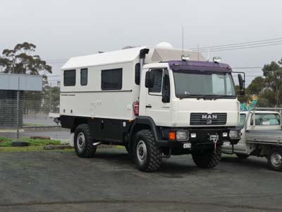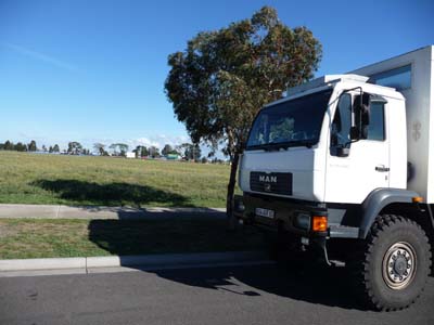 J’étais retourné à Campbellfield pour voir sur le parking du Garage MAN un camping-car sur châssis MAN fabriqué en Australie. J’étais intéressé de connaître le fabricant pour effectuer des travaux sur mon véhicule. Hélas la société Amesz Design P/L est située à Perth WA. Je pris livraison des amortisseurs Koni en début d’après-midi. |