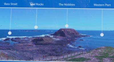 Ensuite je déjeunais en face de The Nobbies à la pointe sud-ouest de Phillip Island. Le spectacle était somptueux, impossible de s'en détacher. La journée fut agréablement ensoleillée avec une température quasi estivale. |