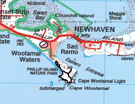 Phillip Island est reliée au continent par un pont inauguré en 1969 préalablement un pont de bois limité à une charge de 6 tonnes reliait l’île depuis 1940. Les premiers habitants furent les aborigènes de la tribu Bunurong. George Bass fut le premier européen à la visiter le 5 janvier 1798. |