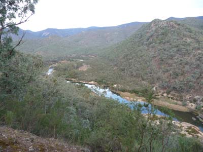 Après la jonction pour McKillops Bridge la route devint une gravel road mais très étroite. Là heureusement je fus encore seul comme au bivouac de McKillops Bridge qui est le départ d’une descente en rafting de la Snowy River en quatre jours. |