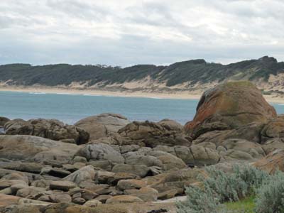 Je continuais jusqu'au Cape Conran NP espérant un bivouac agréable mais introuvable. Je revins à Marlo où des pélicans perchés au sommet de réverbères dominaient le paysage. Le bivouac fut au bord de l'omniprésente Snow River près de l’embouchure. La journée fut maussade, froide et toujours sans pluie. |