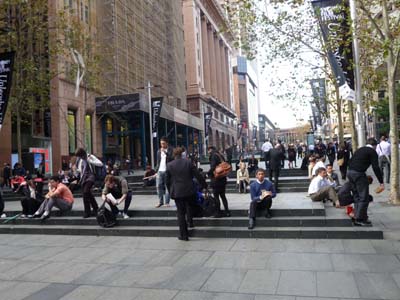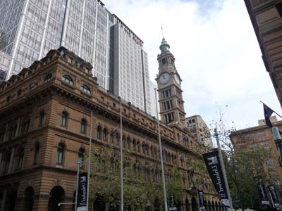 Le lendemain je retournais au GPO Poste Restante avec les preuves de l’envoi et de l’arrivée du colis. Après des investigations, le personnel s’aperçut que mon nom avait été mal orthographié et que le n° de suivi avait été tronqué. Il était donc impossible de le retrouver dans le système informatique. Je commençais la visite de Sydney à l’heure du déjeuner à St Martins Place écrasée par l’imposant édifice de La Poste et par d’autres bâtiments de style Victorien construits à la fin du 19ème siècle. |