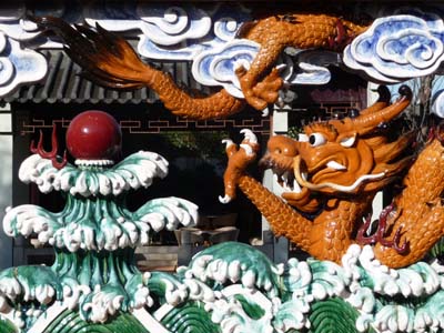 Le mercredi 02 juin la journée s’annonçait sous d’heureux auspices, le soleil était apparut de bon matin. Je visitais le quartier chinois, sans commune mesure avec celui de Singapour ou de Kuala Lumpur. Mais dans le Darling Harbour un jardin chinois fut crée par des architectes de Canton, ville jumelle de Sydney, en 1984. Tous les symboles de la culture chinoise y furent rassemblés. C’est un havre de tranquillité mais non de silence, le bruit de la ville est omniprésent. |