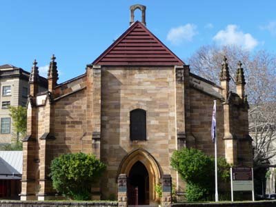Tout à côté The Rocks conserve des spécimens des édifices des premiers colons et des bagnards. Ainsi Cadman’s cottage construit en 1816 est le plus ancien bâtiment et fut la résidence des bateliers du gouvernement dont John Cadman ex-bagnard libéré. De l’autre côté du Harbour Bridge Garrison Church fut la première église militaire. |