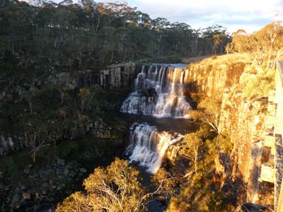 Pour bivouaquer je décidais d’aller voir des Chutes d’eau dans des parcs. La première réputée être l’une des plus hautes, Wollomombi, manquait manifestement d’eau. La deuxième Ebor Falls où je bivouaquais malgré l’interdiction était bien éclairée par le soleil couchant à environ 1300m d’altitude. |