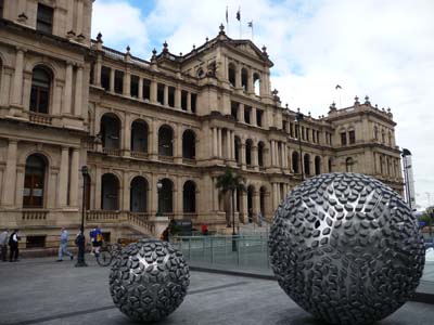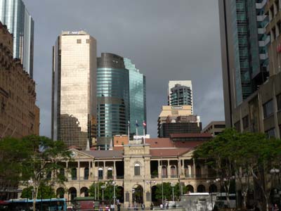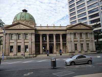 Le lendemain je me rendis chez SDV, le transitaire français, pour organiser l’envoi de mon camion au Japon après avoir visité la Nouvelle-Zélande en le laissant en Australie. Il me fallut une heure de bus du CBD à l’adresse de SDV. Le chauffeur m’indiqua l’arrêt où je devais descendre pour m’y rendre. Je fus accueilli très courtoisement par le Customer Service qui prit note de ma demande et m’assura de la réponse la semaine suivante. Je retournais au centre ville pour faire quelques visites sous un ciel noir de nuages menaçant. La bâtiment le plus grand et le plus impressionnant de Brisbane est l‘ancienne trésorerie transformée en lieu de restauration et de spectacle. |