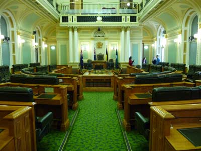 A côte du City Brisbane Gardens furent construits les édifices officiels dont le Parlement que je visitais avec un tour guidé. |