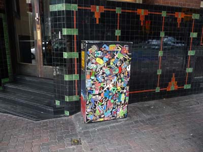 Retournant à Adelaide pour prendre le bus de retour je découvris une armoire électrique taguée pour cacher sa nudité hideuse, maintenant elle ne passe plus inaperçue |