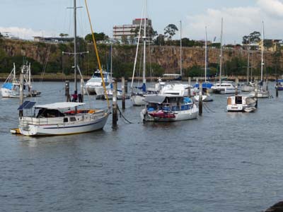 Je fis un détour pour franchir le Story Bridge, petit frère du Harbour Bridge de Sydney, pour prendre des photos du Front de la Brisbane. La luminosité n’était pas au rendez vous. |