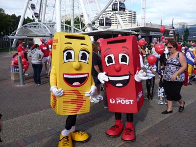 Le mercredi 23 juin en route vers Brisbane je me détournais pour rendre visite à une entreprise de carrosserie de camion et de homecar pour faire réparer des fuites d’eau dans la cellule, le problème récurrent du soufflet de liaison entre la cabine et la cellule –l’accordéon-, la fuite d’eau au lanterneau de la douche, l’infiltration d’eau entre le double vitrage d’une fenêtre et autres bricoles du même genre. J’avais rendez-vous le mercredi de la semaine suivante pour évaluer le coût des travaux. Arrivé en fin de matinée au Newmarket Gardens CP j’installais le camion puis je partis pour le centre ville à environ 4km à vol d’oiseau. La première journée dans une nouvelle capitale d’État commence toujours de la même manière c’est-à-dire la découverte des moyens de transports pour prendre mes marques. Comme d’habitude la réception du camping me remit la liste des bus et un plan du CBD. Pendant mes pérégrinations je pris quelques photos de la ville sous un ciel plombé. D’abord le General Post Office où je demandais le libellé exact de l’adresse en poste restante, puis le Tourist Office où je fis la moisson de brochures, de lignes de bus et de train enfin cheminant je découvris trois étranges sculptures, pas vraiment belles, de l'art australien contemporain. |