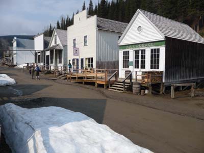 Barkerville fut érigée dans les années 1862 après que William Baker eut découvert un filon aurifère dont il tira $6 millions en or. En 1865 la Cariboo Wagon Road atteignit Bakerville permettant un approvisionnement régulier du village. En septembre 1868 un incendie ravagea la ville qui fut reconstruite avant l’hiver. Mais bientôt le rêve s’évanouit et la ville déclina rapidement. Les maisons actuelles ont été reconstituées à partir de photos d’époque. Le site est ouvert au tourisme vers mi-mai après la fonte des neiges, l’altitude du village est d’environ 1300 mètres. L’activité touristique n’était pas encore très grande. La visite du site montre la rudesse de la vie des chercheurs d’or à cette latitude dans des conditions très difficiles. |