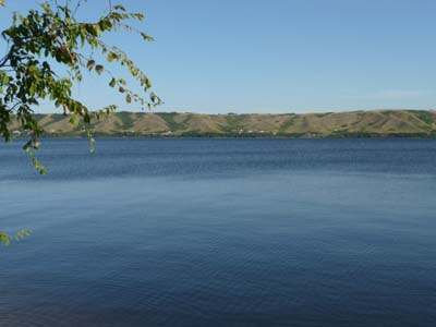 Il expose trois crânes de T-Rex et un Brontothere. Tous ces fossiles et bien d’autres furent trouvés dans la région du sud du Saskatchewan. Avant l’entrée de Eastend j’avais avisé un boat launch où je passais la nuit au frais au bord de la Frenchman River ! |