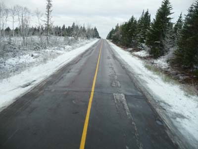 La nuit fut très froide, le camion était couvert de glace et la température intérieure de 6°C. Après la publication des pages de mon site du parking de McDo, je me dirigeais vers Saint John dans le New Brunswick par la route côtière que j’abandonnais rapidement, elle était verglacée, pour prendre les Hwy #2 & #1, safety first. |
