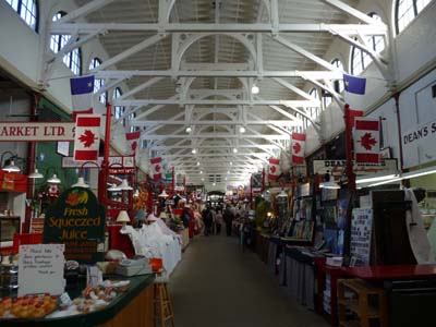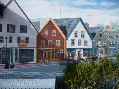 Sur le rivage un Blockhouse est le dernier vestige d’une nombreuse série datant de la guerre de 1812 avec les USA. Au coin de Water & King St un mural est plus vrai que nature. |