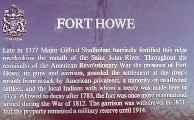 Je pris une collation en route pour arriver en début d’après-midi à Saint John sous un ciel d’un bleu limpide assorti d’un vent glacial. Les curiosités de la ville sont rares, l’hôtesse du VIC m’indiqua le City Market, bien pas de quoi fouetter un chat. Par contre la ville est dominée par deux constructions militaires, le Fort Howe et le Carleton Martello Tower d’où la vue panoramique est imprenable. Je bivouaquais sur le lieu.s |