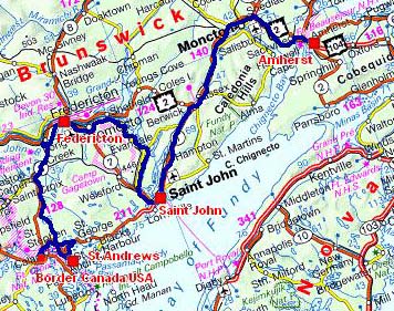 -- De Amherst à St Stephen, Frontière Canada/USA |