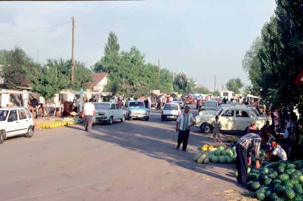 the border of Uzbekistan and Kyrgyzstan then by two vans to Och.