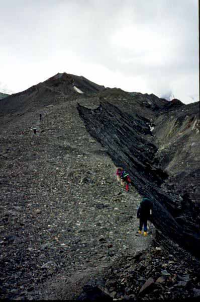 -- the first, along the glacier, has many crevasses to reach the slope,